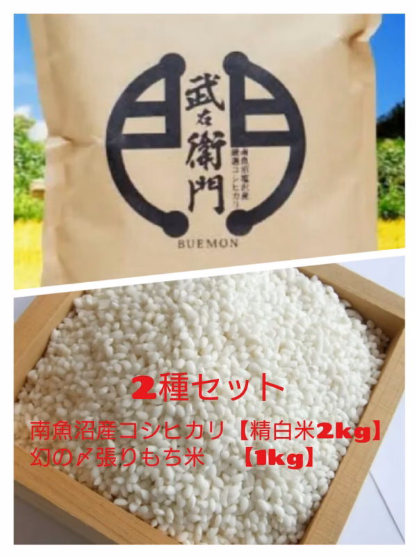 南魚沼塩沢産コシヒカリ2kgと幻の〆張りもち米1kgをセットにしました!
