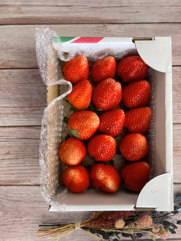 - 出荷時にいちごを横にして考えうる痛みを最小限にしておりますが、輸送でいちごが擦れてしまい痛みが出る可能性があります。何卒ご了承の程よろしくお願い致します。