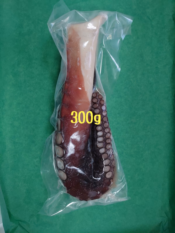 タコ箱漁で水揚げされたタコを即浜茹でし、真空パックをして急速冷凍しています。