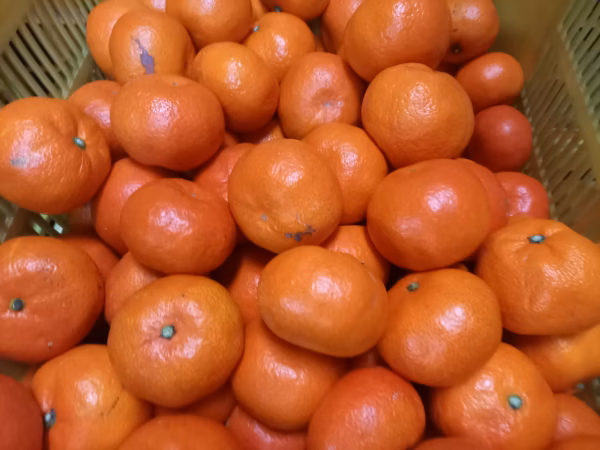 そのため、画像ではきれいなみかんですが、黒い点や傷がある果実があります。ただし、これらは果実の中味(おいしさ)には影響ありません。