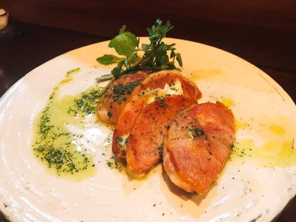 写真はボンレスハムのサルティンボッカ、ロースハムとトンナータソース、バラベーコンのフジッリの写真で、商品画像は準備中です(汗)