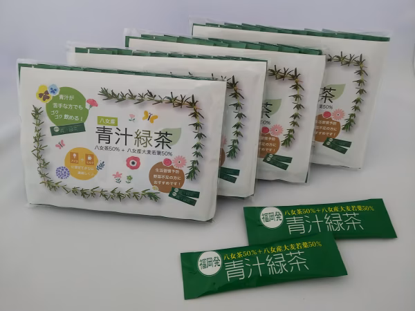 八女産抹茶50%+八女産大麦若葉50%をブレンドした青汁緑茶ですのでとても飲みやすい商品です。
