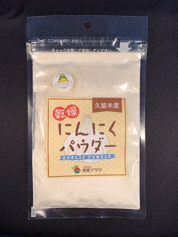 福岡県久留米産の乾燥にんにくぱうだーです。自然豊かな久留米市城島町で安全・安心にこだわり育てたにんにくを、お手軽に使っていただきたいと乾燥パウダーし、にんにく特有の風味が失われにくいようにパック加工しております。使い方はいたってかんたん!塩と同じ様な調味料と考えていただければ使い方も広がります。例えば、唐揚げ粉に混ぜて使用したり、ステーキを焼く時の塩コショウに入れたり、チャーハンやカレーの隠し味にしたりと大変便利にお手軽にお使いいただけます。