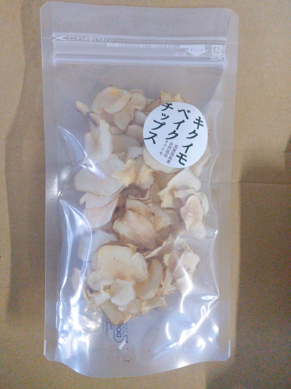 - 名称:キクイモベイクチップ 原材料:菊芋 内容量:25g 保存方法:高温多湿を避け冷暗所に。開封後お早めに召し上がってください。 製造者:滋賀県高島市マキノ町上開田161-2 TakashimaNaturalFarmKAIDE