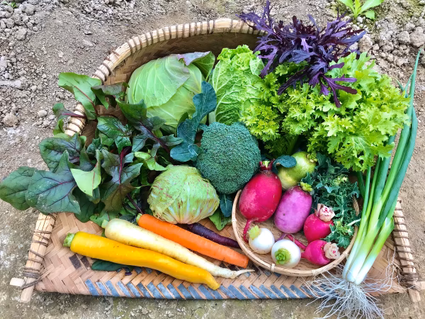 なるべく幅広い調理に使いやすい様に根菜類・葉物・花菜類等、又、彩りも考えて送らせて頂きます。