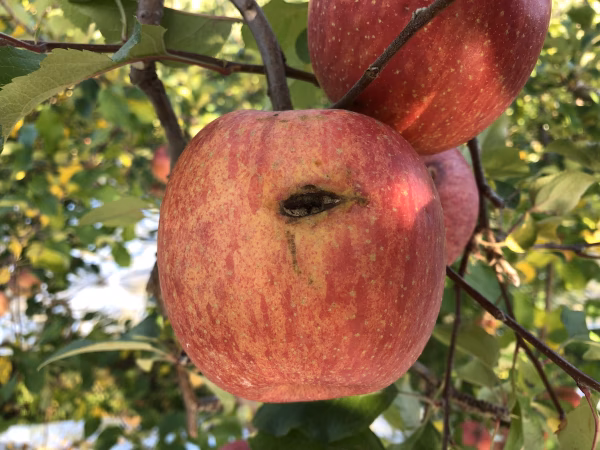 台風などで出来た大きいキズ、大きなサビ、大きなツルワレ、打撲など。見た目は悪いですがキズの部分を取り除いてもらえれば問題なく食べてもらう事が出来ます。生食はもちろんお菓子作りや料理などにいかがでしょう。傷口から水分が抜けやすくなったり傷みが広がりやすくなるのでお早めにお召し上がりください。