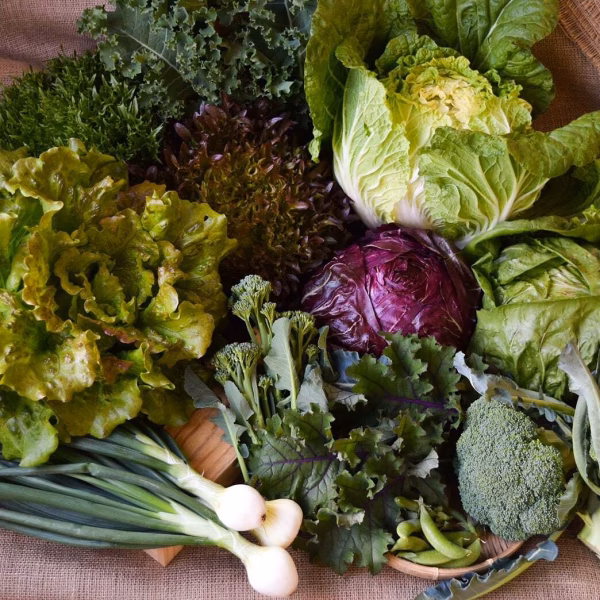 赤からし菜、春菊、小松菜、スイスチャード、サンチュ、