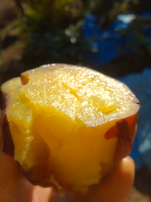 ちょいと訳ありのサツマイモを特価販売です。 皮の表面に傷や亀裂が入っているお芋たちです。 (添付写真のお芋は実物の一部ですので参考にしてください) 傷口付近から傷みやすくなってはいますが、傷部を削いで、すぐに使ってくださるようであれば特に問題なくいただけます。 (先日、念のため中身をいくつか確認しましたがどれも問題ありませんでした。トップの添付写真は蒸してお芋を割った時の写真ですので、よろしければ参考にしてください) 栗のようなホクホク食感と煮リンゴのような甘味を備えた食べ応え抜群のサツマイモです♪ ※品種は焼き芋人気もとても高いカンパチです。 ※サイズは大小混合となり、品質保持のため若干の土付きでのお届けになります。 ※量がそれなりに多く、なるべく早めに使っていただきたいことから、お菓子作りや加工品作りなど、まとめて一気に使える方にご利用いただけたら嬉しく思います。 条件わがままで大変申し訳ありませんが、ご理解いただけた方のご利用を心よりお待ちしております♪ どうぞよろしくお願いいたします。