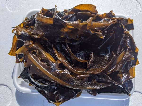 三陸産の生ワカメです。太平洋の荒波にもまれシャキシャキ、肉厚で歯ごたえがあり風味豊かです。本来、生ワカメは茶褐色ですが湯通しすると鮮やかな緑色になります。生ワカメの賞味期限は3日程です。湯通しし水気を取り冷蔵保存で1週間程保ちますす。朝、刈り取りしたワカメをその日のうちに鮮度を保ち発送します。