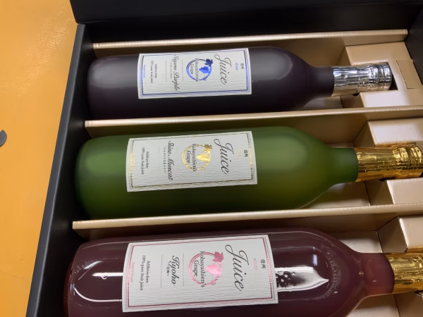 巨峰・ナガノパープル・シャインマスカット100%ジュースのセットです。どれもワインのような濃厚な味わいです。3種飲み比べてお楽しみいただけます。