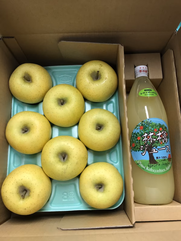 シナノゴールド小玉数個とシナノゴールドの果汁ジュースのセットです。