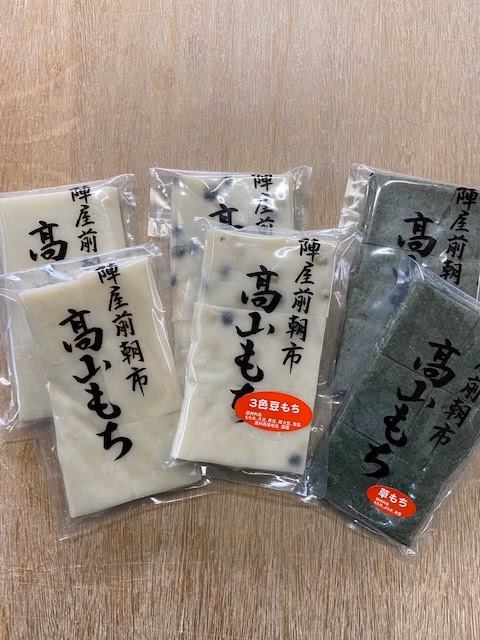 高山産の大豆と黒豆を加えた、ほんのり塩味のお餅です。