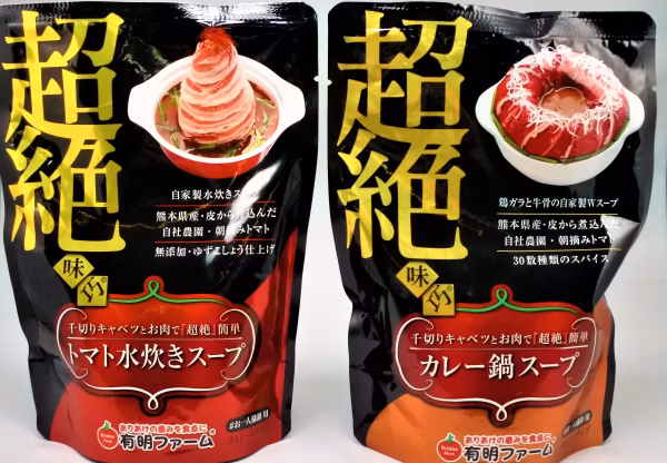 - トマト水炊きスープ 鶏がらスープ(鶏がら(福岡県産))、トマトピューレ(熊本県産)、砂糖、醤油(小麦・大豆を含む)、オニオンソテー、大豆油、食塩、コンソメ、かつおぶし、にんにく、麦味噌、柚子こしょう、香辛料 カレー鍋スープ トマト(熊本県産)、カレールウ(小麦粉、豚脂、牛脂、カレー粉、食塩、砂糖、その他)(大豆を含む)、ブイヨン(鶏骨、牛骨)、醤油、ぶどう糖果糖液糖、ソテーオニオン、脱脂粉乳、コンソメ、甜麺醤(ごまを含む)、バター、にんにくペースト、香辛料、砂糖 / 増粘剤(加工でんぷん)、調味料(アミノ酸等)、カラメル色素、乳化剤、pH調整剤、酸味料、香辛料抽出物