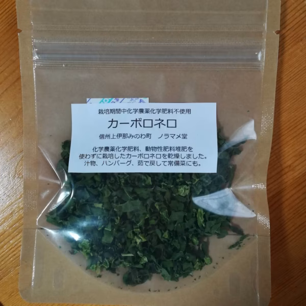 イタリア・トスカーナ地方原産、ミネラル豊富といわれるケールの仲間「カーボロネロ(黒キャベツ)」を乾燥させました。そのまま煮込み料理に使ったりお肉に巻いて焼いたり。1〜2分茹で戻して炒め物に。その他、いろいろなお料理のトッピングにお使いください。
