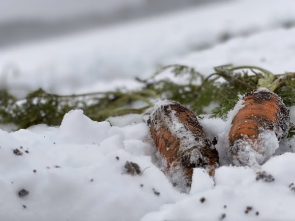 私たちの雪下ニンジンは秋に収穫するはずのニンジンを葉が枯れて、少しの雪が積もっても掘り取らずに我慢します。