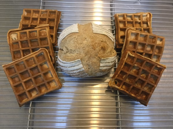 ワッフル:自家製全粒粉、自家製米粉、りんご酵母、牛乳、鶏卵、甜菜糖、塩