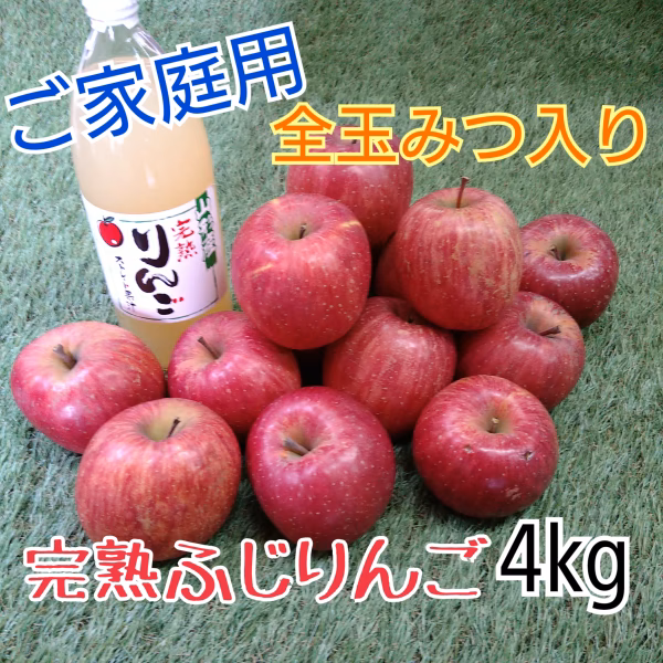 (サビ果、軸割れ、軸無し、枝によるキズ、着色不良、変形果、小玉、大玉等含みますが、全玉みつ入りです。)