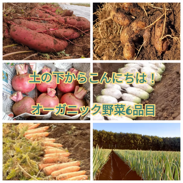 寒さによる傷みから守るために、土の中に貯蔵している野菜、里芋、もものすけ、ミニ大根。