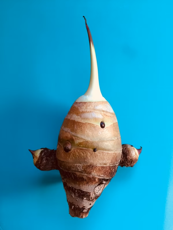 泰山寺自然栽培野菜「ずんどこやちゃいサトイモ」から選抜された「たけのこ妹子」は、気になるぬめりとカロリーを控えながら、味は里芋の王様と称されるほどの絶品格でございます。