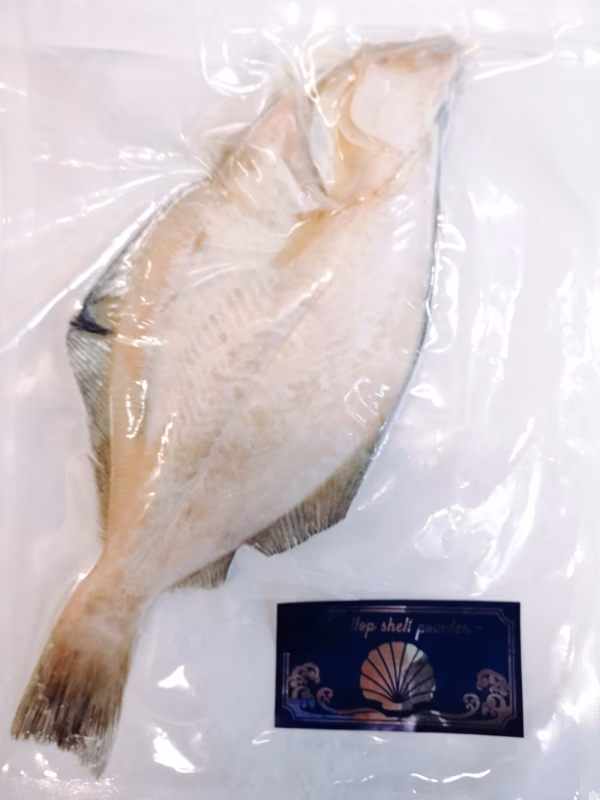 漁師が6次化(生産→加工→流通販売)を行うにあたり、干物製造にとりかかり天日干しを行っていました。 が、八雲は晴れの日が少なく(なにせ8割曇りで八雲という説もあるくらい)なかなか干せず、せっかく下処理した魚を無駄にしてしまったり、天気を気にしながら作るため寝る時間がない等製品作りに困難を強いられました。 「漁師のライフスタイルにあった、天候関係なく作れる方法はないか」と模索していたところ和歌山県で火山灰を利用し干物をつくる「灰干し」という製法があることを知りました。 しかし、八雲では火山灰は入手できません。 代用となるものがないか思案していると、ふとホタテの殻を粉にしている工場が八雲にあることに気づきました。 北海道噴火湾はホタテ養殖が盛んな土地で加工屋も多く、毎年多量のホタテの殻が産業廃棄物となります。 その殻を1000℃以上の高温で焼成し粉砕したものがシェルパウダーです。 「これだ!」と早速シェルパウダーを入手し試作したところ見事に干物ができたのです。 それから製品化にむけ試行錯誤し完成した「干さない干物」。 更に、ホタテの殻の消臭作用や除菌作用により魚の臭みも軽減され天日干しとはまた違う独自の仕上がりとなりました。 天日干しはどうしても魚の脂の焼ける匂いがしてしまいますがシェルパウダードライ製法は天日に干さないので日焼けしません。 干しすぎず、レアな状態。 焼くとふっくらと身が盛り上がり、凝縮された旨味が際立ちます。そして臭くない! 海から生まれた廃棄物を有効利用し海に還元する、まさに地産地消のエコ商品です。 世界初の製法(おそらく)、弊社のみ販売の海と漁師に優しい逸品を是非皆様の食卓で味わって下さい!