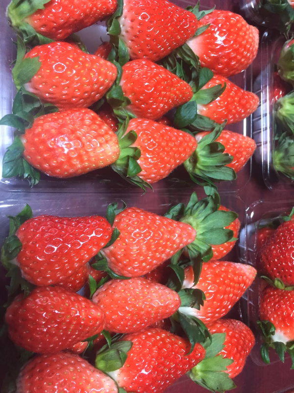 小粒〜普通サイズのイチゴを2段で1パックにします。大粒の奇形果などが含まれる場合もあります。1パックに12粒〜20粒程度になります。