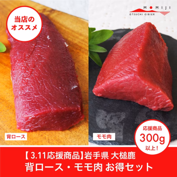 大槌鹿の部位によって異なる美味しさを皆さんに堪能いただきたいので、人気の高い背ロースとモモ肉をセットでご提供いたします。