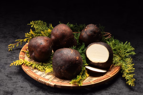 外皮はごつごつして黒いのですが、切ってみると肉質はきめ細かく真っ白で、とろろにするとものすごい粘りがあります。
