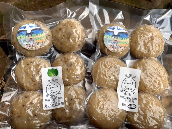 - 名称:えごま玄米餅 原材料名:新羽二重餅米(京丹後市産) えごま・えごま油 賞味期限:1か月 製造者:久美浜sun's son 京丹後市久美浜町海士613 保存方法:冷蔵庫または冷凍庫で保存