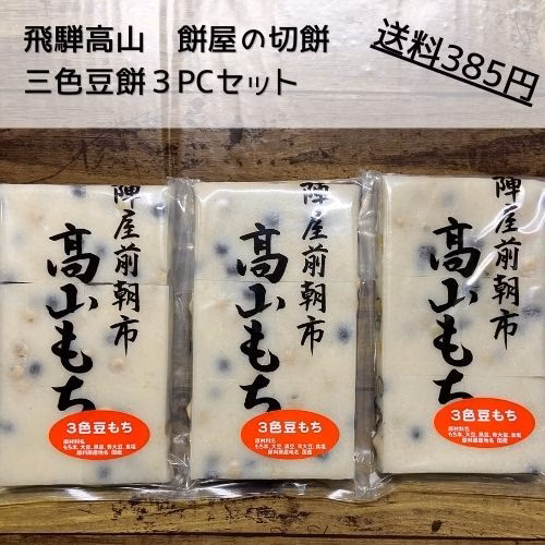 高山市産の大豆・青大豆・黒豆の三色の豆を蒸して、お餅に加えました。
