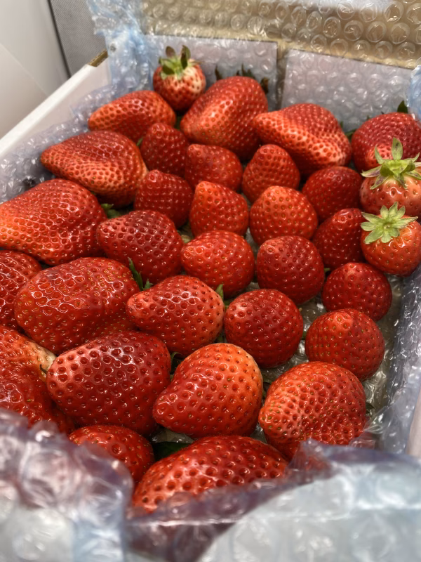 JA出荷基準より熟しているものもありますので、輸送中に揺れや振動で苺同士がぶつかりピンクや白っぽく変色することがあります。腐っているわけではありません。