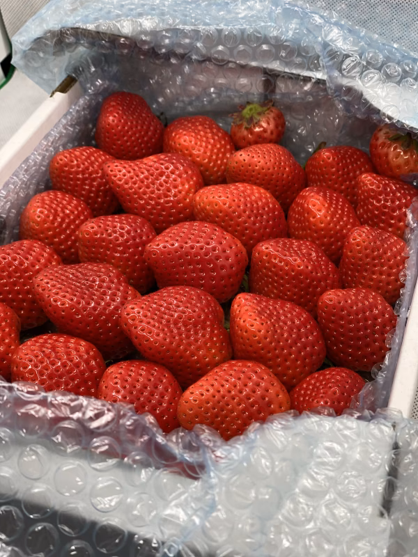 JA出荷基準より熟しているので、輸送中に揺れや振動で苺同士がぶつかりピンクや白っぽく変色することがあります。腐っているわけではありません。輸送傷みがあまりにひどい場合にはヤマト運輸さんへの連絡をしますので、お召し上がりにならずご連絡頂ければ返品対応いたします。