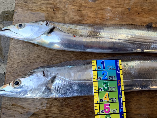 この太刀魚は、指3〜3.5本ぐらいのサイズを2匹セットです。