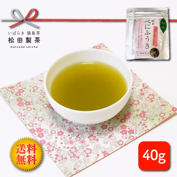 - 品名 粉末べにふうき 原材料名 緑茶 内容量 40g 賞味期限 製造日より1年間 保存方法 直射日光や高温多湿を避け、涼しい所で保管してください。 原材料産地 茨城県産