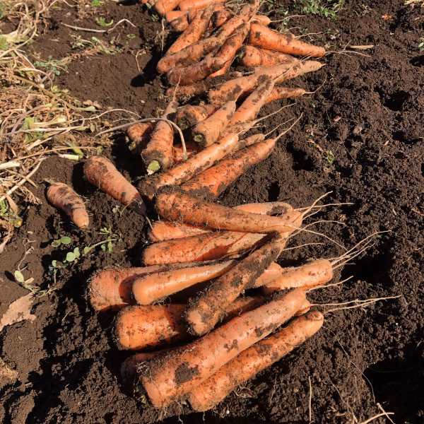 近隣から出た有機物を畑に入れて土づくりをし野菜を育てています。