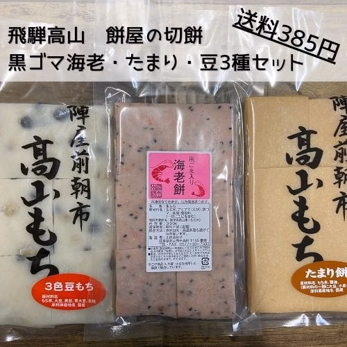 特記事項に記入いただければ、プレーン・豆餅・草餅・たまり餅・黒ゴマエビ餅の中から3種選んでいただいて3品での梱包も対応いたしますので、お気軽にご連絡ください。