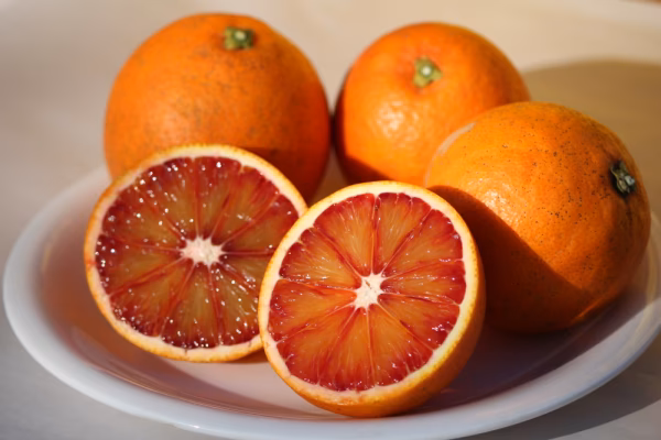 ブラッドオレンジは、果肉が紅いオレンジの総称で、その名の通り血のような赤い色をしています。この色はアントシアニンによるものです。