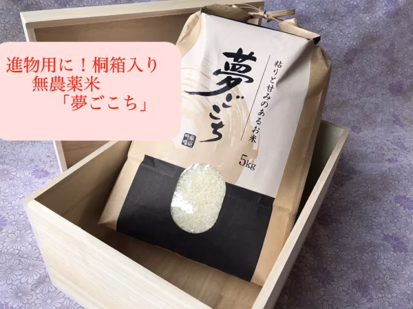 農薬・化学肥料を使用せず有機土壌の田んぼで栽培した最高級の品種「夢ごこち」。
