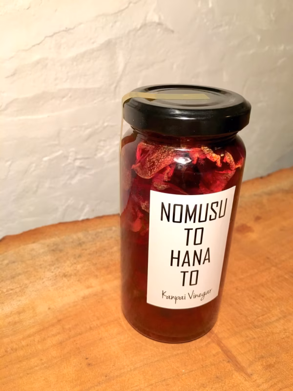 エディブルフラワー(食用花)を有機純米酢に漬け、食用花入りオリジナル飲む酢に仕上げました。国産はちみつとシナモンなどで程よい甘さに。花そのものの色を液に浸透させ、炭酸水で割るとシャンパンのような味わいに。