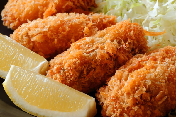 とれたての新鮮なかきを急速冷凍し、そのまま生パン粉で仕上げ、鮮度、旨味、やわらかさ、を封じ込めました。