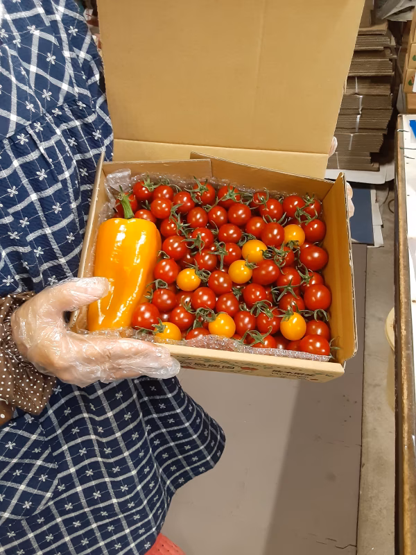4. 宮島農園の完熟ミニトマト。パプリカ一本入り1kg