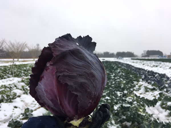 雪締めで甘みが格段に増した紫キャベツSサイズを10個お届けいたします。