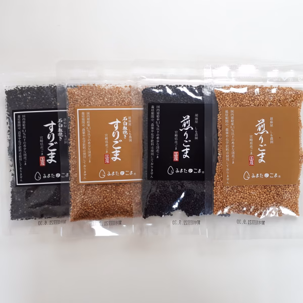 国産0.1%以下といわれる希少な国産(宮崎県産)ごまを、自社で丁寧に焙煎加工した風味抜群の商品です。