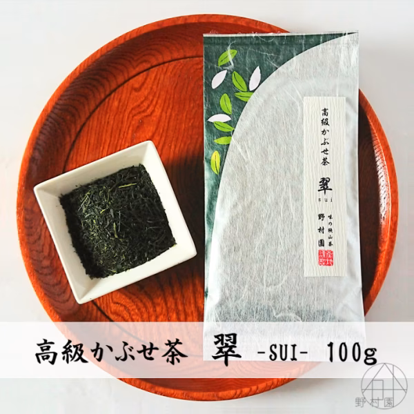収穫の7日前からお茶の木に覆いをかけ(かぶせ)、日光を遮って育てた高級かぶせ茶。
