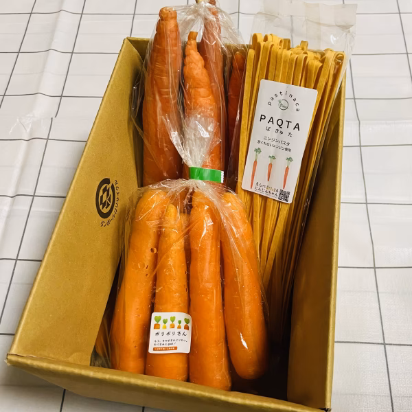「えらべるにんじんちゃん」の中からセレクトした最旬の2種類と、にんじんちゃんを使用したパスタ「PAQTA(ぱきゅた)」のお試しセットです。