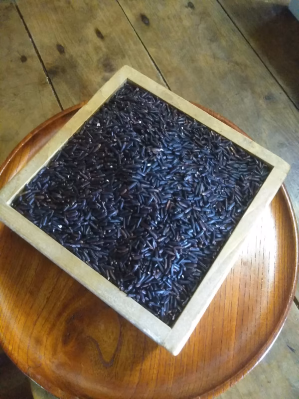 すぐ近くにの畑水神社から湧き出る湧水を求めて毎日100人程度の人が水を汲みに来ています。そんな水や空気が美味しい土地で、農薬や化学肥料を使わずにお米や野菜を育てています。お米は2019年から肥料も使わずに育ちました。