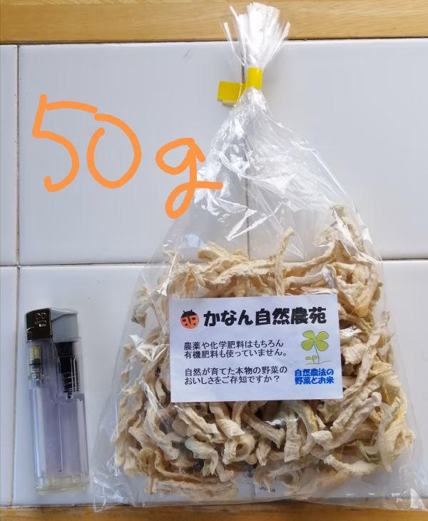 自然農法にて農薬はもちろん、肥料も一切使わずに育てた聖護院大根の切り干しです。