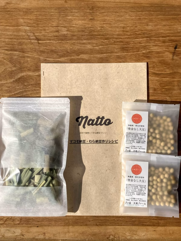 大和ファームが無農薬・無化学肥料・微生物栽培で育てた大豆とマコモにレシピを付けたセット!