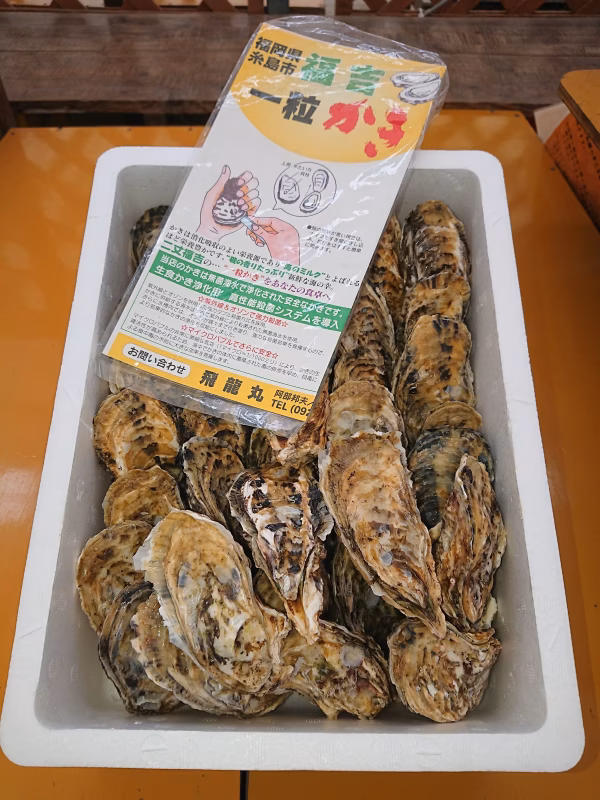 ・福吉地区のかきは、糸島の中でも、潮の流れがはやいため、くさみが無く、身がひきしまり、塩分が濃ゆい分、それ以上に牡蠣に甘みがあります。まずは、何もつけずにおめしあがりください!