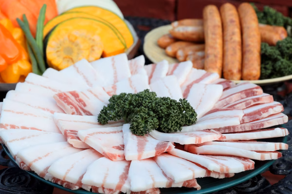 ※画像はイメージです。 1パック分(豚バラ:300g、ソーセージ200g)