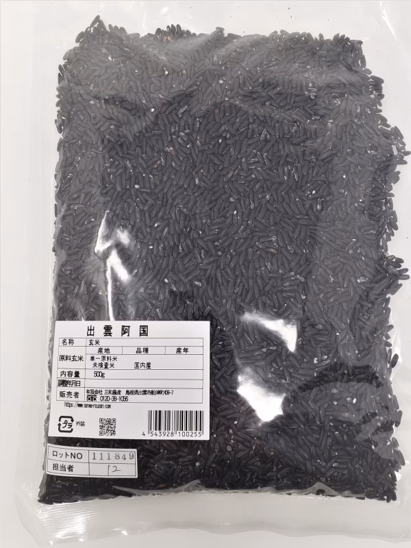縁結びの神様として有名な出雲大社がある島根県出雲市で長年にわたり米作りに取り組んでおります。 特別栽培米で化学肥料、化学農薬は当地平均使用量の半分以下で栽培しています。メール便で郵便ポストにポンでお届け!希少な黒米です。 ここ最近、健康食として注目を集める黒米。普段なかなか食べる機会がありませんが、いつものご飯に混ぜて炊くだけでお気軽に取り入れる事ができます。 目安はお米3合に対して黒米大さじ2杯程度。あとは色や食感等お好みで調節して下さい。ストレス社会の今、皆様の食卓に是非黒米入りご飯をどうぞ!! 古代米である黒米は稲の原種に近いもので、稲作が始まったころ私たちの先祖は採取して食料にしていたようです。大陸から稲作が広がるにつれて栽培する対象となっていったようです。 現代の交配して作られている一般品種には糖質部分が多く含まれ甘くておいしいと感じるものが多いですが黒米は糖質部分に比べてぬか表皮部分が大きくポリフェノールの一種であるアントシアニンが多く含まれているなど注目を集めているいわゆるスーパーフードです。 白米にちょっと入れるだけで紫色の色素と黒米のまろやかな風味が広がりプチプチ食感もお勧めです! 原材料・・・・島根県産黒米 調整年月日・・・・ラベルに記載 保管方法・・・直射日光、高温多湿を避けて保管してお早めにお召し上がり下さい。 内容量・・・・500g